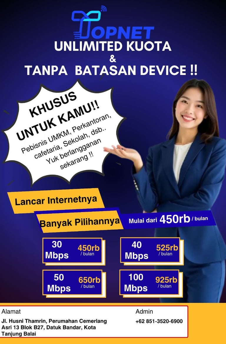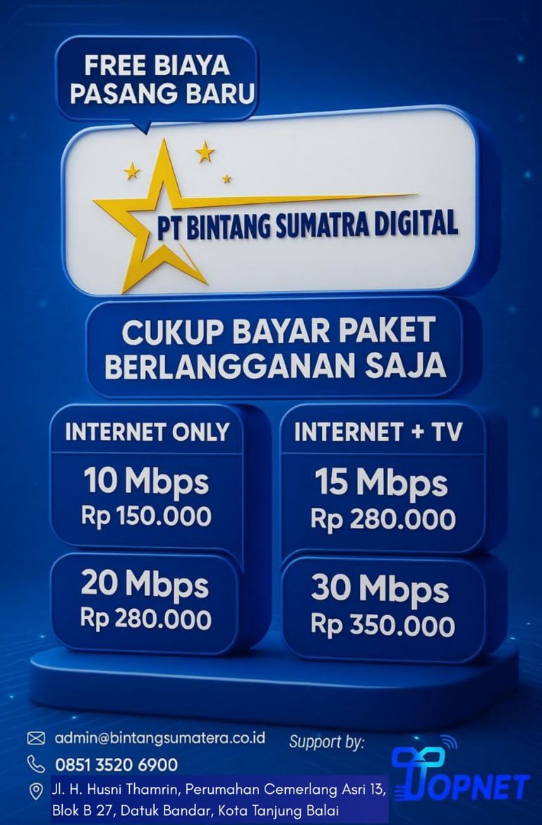 Bintang Sumatera Digital hadir dengan layanan internet unlimited tanpa kuota dan FUP.